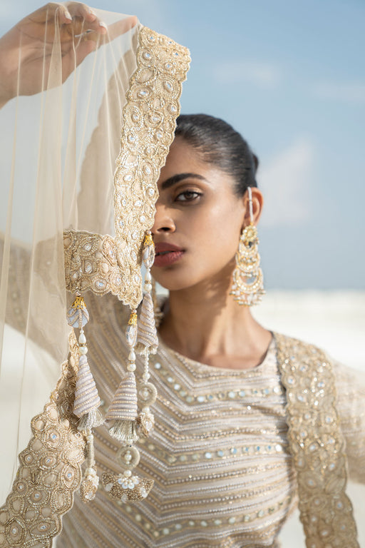 Exquisite floral motif dabka and zari embroidery with touch of pearls
