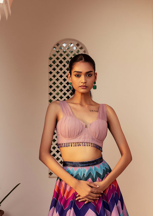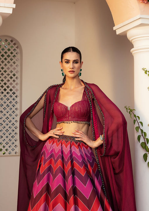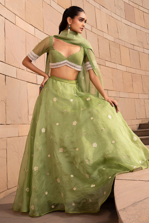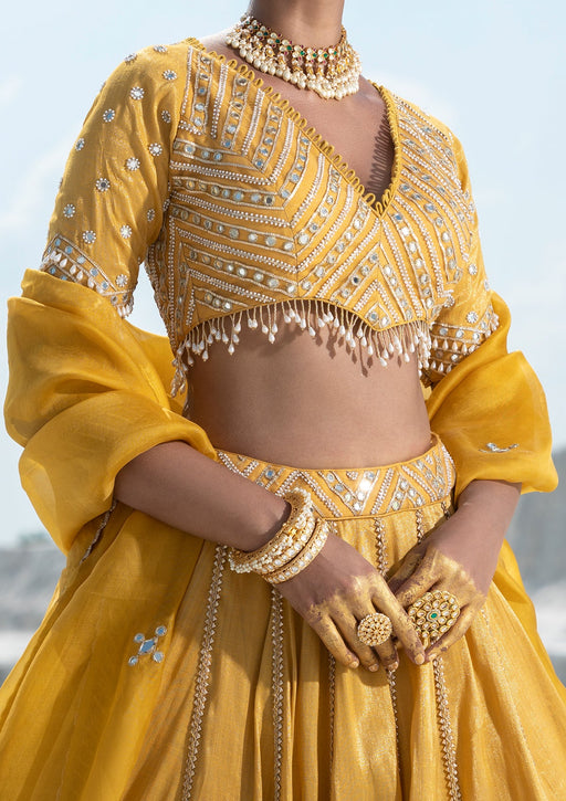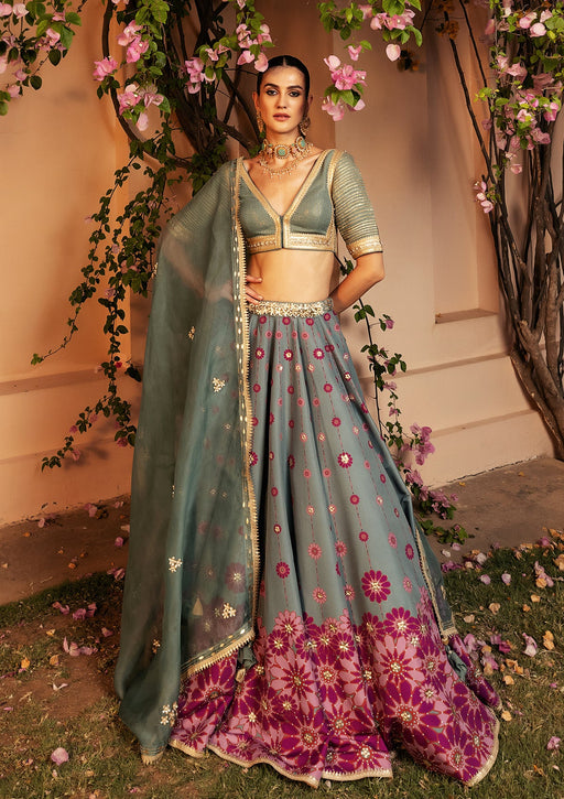 The Gul Lehenga by Muditaa By Urmila is a luxurious ethnic ensemble crafted from Italian satin. It features a net dupatta that is heavily adorned w...