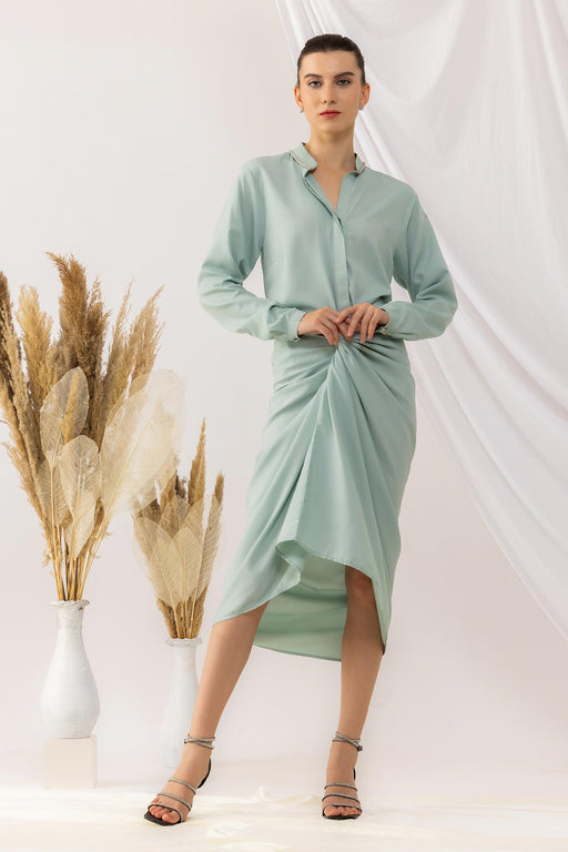 Sea Green Shirt Front Wrap Skirt Co-Ord Set