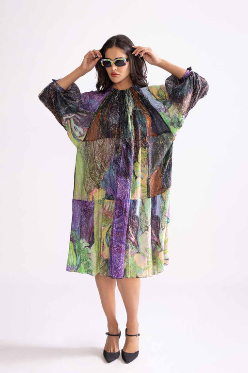 View full detailsTribal Print Batwing Sleeve, High Neck Tiered Midi Dress Multi Daisy Kurta Dress