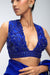 SAPPHIRE BLUE EMBROIDERED SAREE WITH DEEP NECK BLOUSE AND INSKIRT