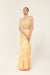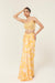 A noodle strap blouse hand embroidered with pearls and katdana paired with dhoti skirt so easy breezy to carry. Comes with a short detachable cape in net with pearl detailing on it!