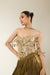 Shimmer in every step with this hand-embroidered mirror corset paired with a flowing lehenga. Paired with a sleek dupatta with mirror embellishments on neck. Crafted for the spotlight, it’s a bold blend of structure, sparkle, and celebration.