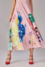 Floral placement print midi flared dress with fitted bodice and square neckline