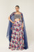 A Beautiful hand embroidered top paired with printed flared sharara pants. The best part is the organza cape with floral and zari detailing on it making the outfit unique.