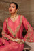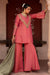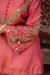 Vivid and festive, this hot pink gharara set is a celebration of bold contrasts and intricate artistry. Crafted in radiant tissue fabric, the kurta features hand-embroidered Indian work in a rich copper tone along the neckline and bell sleeves — blending aari, zardozi, and resham for a regal, textural finish. The look is paired with a matching tissue gharara that flows effortlessly, and a striking contrast green dupatta in tissue, bringing freshness and balance to the ensemble. Perfect for pre-wedding festivities and joyous occasions, this set is where color meets craftsmanship in its most refined form.