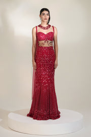 A masterpiece in every stitch, artisanal craft at its finest. Hand-embroidered with a mix of luxurious katdana, stones, and embellishments, each piece is a testament to time-intensive craftsmanship. The Blouse has beautiful beading detail at the waistline making it unique. The signature pearl necklace dupatta elevates the ensemble, draping elegantly across the neckline and flowing into a minimal net back, completing a look of unparalleled grandeur and festive opulence.