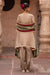 Rooted in tradition, yet redefined for the modern muse — the Noor set in olive gold tissue brings together relaxed elegance and regal detailing. The flowy kaftan-style kurta is elevated with intricate hand embroidery along the neckline and front panel, with delicate motifs trailing down to the hem. Each stitch is a blend of zari, resham, and dabka, capturing light with every movement. Paired with a structured salwar in matching gold-tinted tissue and a dual-tone tissue dupatta in deep maroon and olive, trimmed with sequin scalloping — this set strikes the perfect balance between minimalism and festivity. A statement piece for mehendis, dinners, or home festivities, Noor is understated luxury in its purest form.