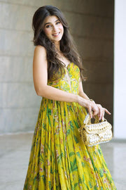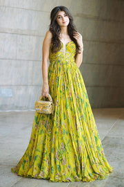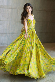 Embroidered ruched anarkali with dupatta