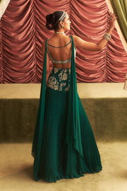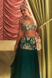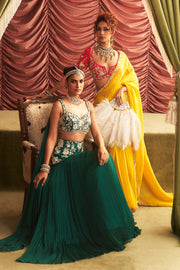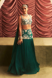 Embellished Choli with Attached Dupatta and Lehenga with Cancan Set